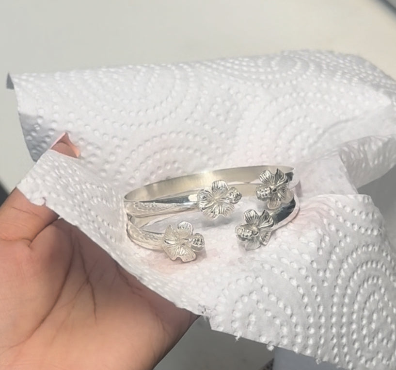 925 Hibiscus Grc Flat Band Bracelet